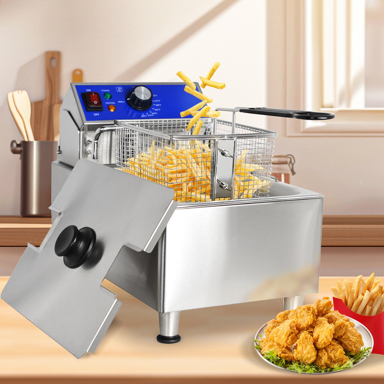 EasyRose 10L Commercial Deep Fryer with Basket 1800W Electric Frying Machine, ETL
